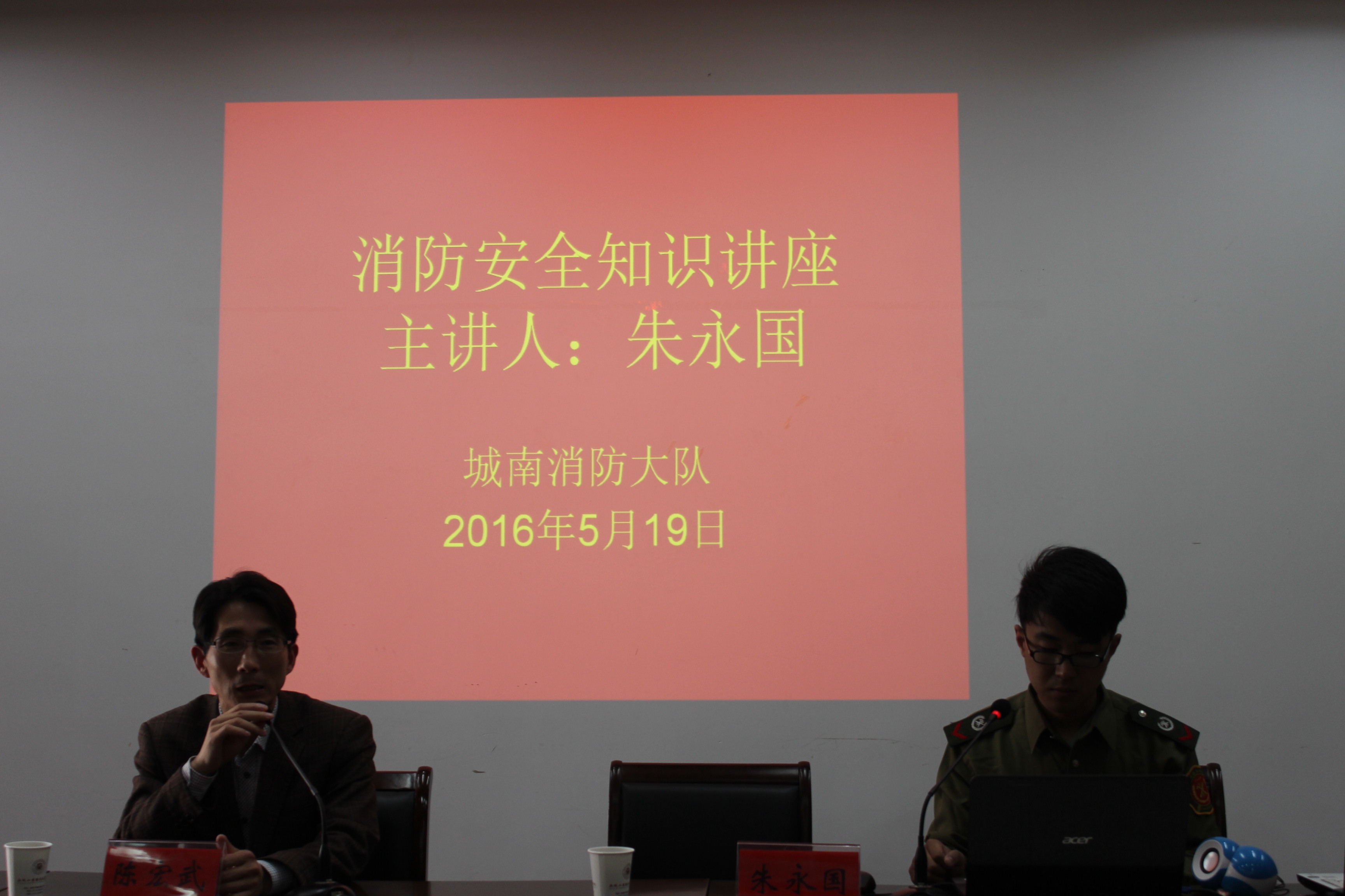 5月19日下午,学校邀请盐城城南消防大队消防员朱永国来校作消防安全知识讲座。学校安保人员,宿管,食堂工作人员及图书馆工作人员共60余人聆听了知识讲座。讲座由后勤管理处处长陈宏武主持。