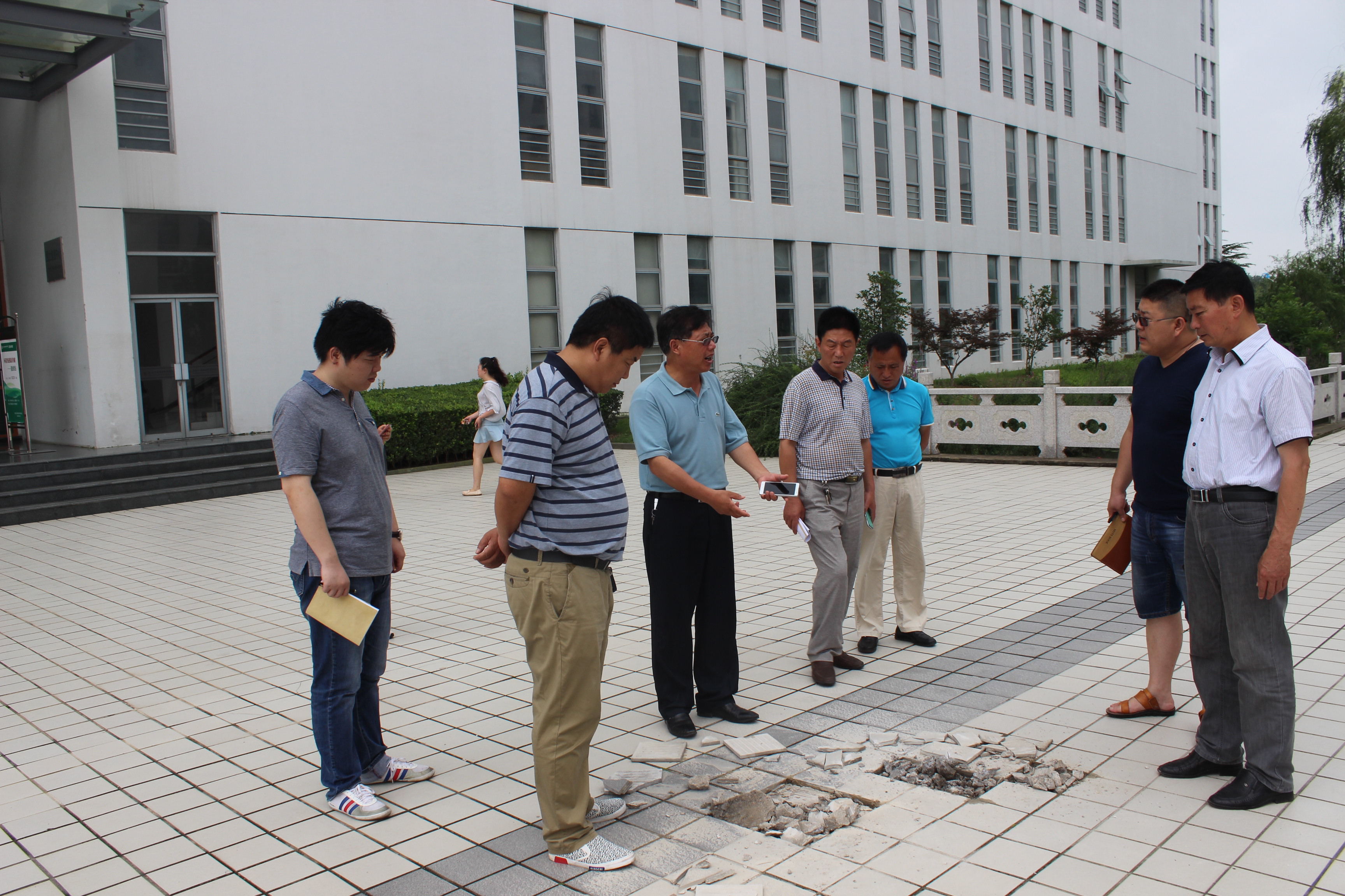 在检查各教学组团时,刘必千叮嘱暑期安保人员要在汛期、台风来临之际做好各楼宇的安保工作,要求门窗及时关闭,确保暑期安全。