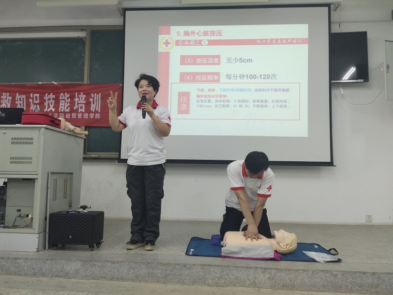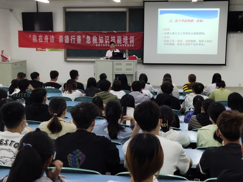 为提高师生应急自救互救能力,发扬“人道、博爱、奉献”的红十字会理念,5月23日下午,经贸管理学院联合盐城市红十字会在公共教学楼2203教室开展了“救在身边 崇德行善”急救知识技能培训。本次培训由盐城市红十字会的6名专业老师进行授课,170余名师生参加了培训。