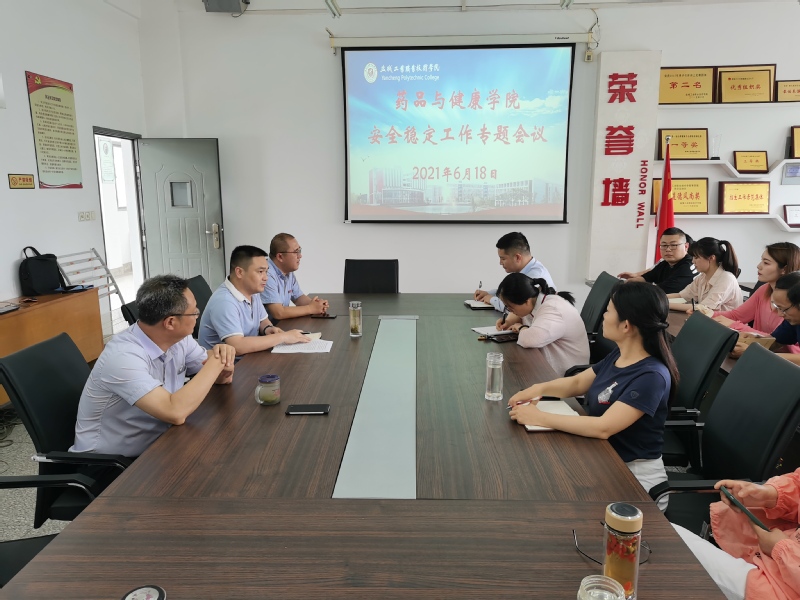 6月18日,药品与健康学院在305会议室召开学院安全稳定工作会议,学院全体教职员工参加了会议,会议由杨勇主持。