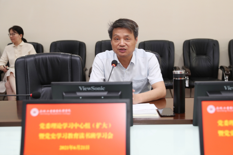 6月21日,学校党委理论学习中心组(扩大)暨党史学习教育读书班学习会在图文信息中心第一会议室召开。在盐校领导,各党总支和直属党支部书记、各部门和各二级学院主要负责人参加学习。校长瞿才新主持学习会。