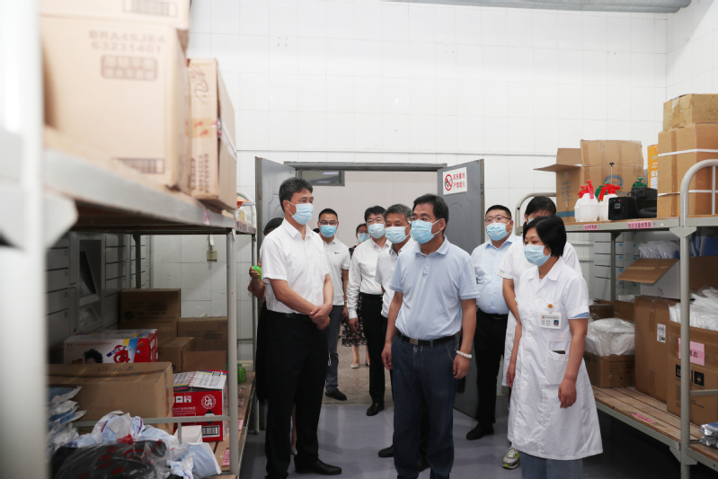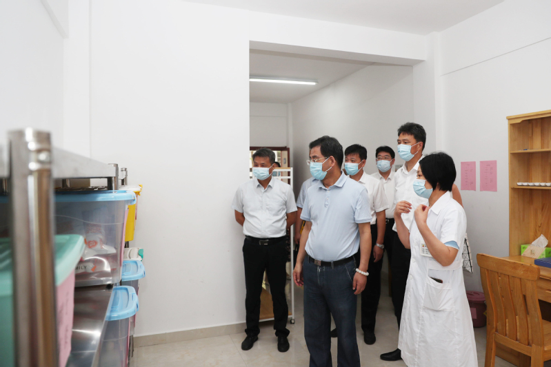 会后,督查组实地察看了工业中心、卫生所、防疫物资储备库、学生食堂、学生宿舍、隔离观察点等场所,并详细查阅了疫情防控工作台账。