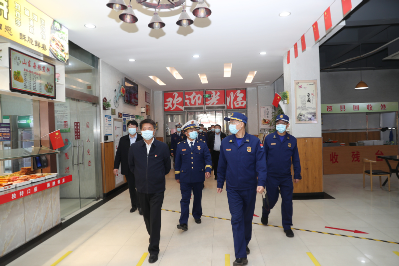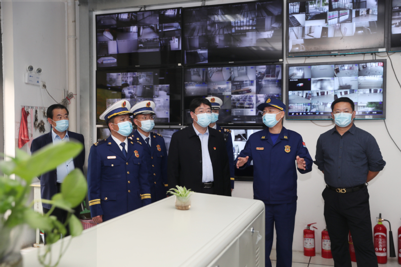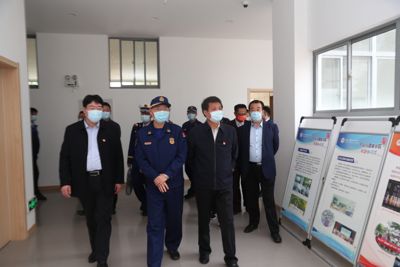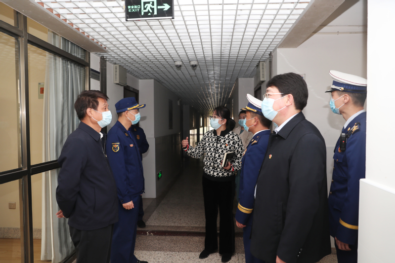 俞翔一行实地察看了药品与健康学院危化品仓库、学生宿舍、食堂、消控室等重点消防场所,查阅了学校消防制度、消防巡检记录等相关台账,询问了人员值班、安全检查等情况。