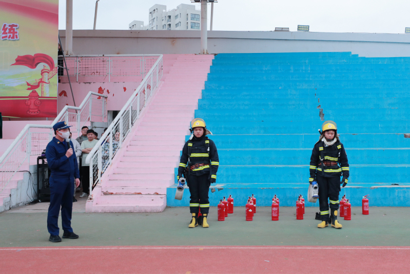 法治教育大会随后举行。张杨对本次消防应急疏散演练给予了充分肯定。他从火灾隐患排查、火场如何逃生、火灾后如何追责等三个方面给同学们作了消防安全知识讲座,并从如何使用灭火器、如何穿戴灭火战斗服等两个环节给同学们进行了现场演示。施源从如何防范电信网络诈骗、如何抵制毒品等方面,为同学们开展了法治教育。