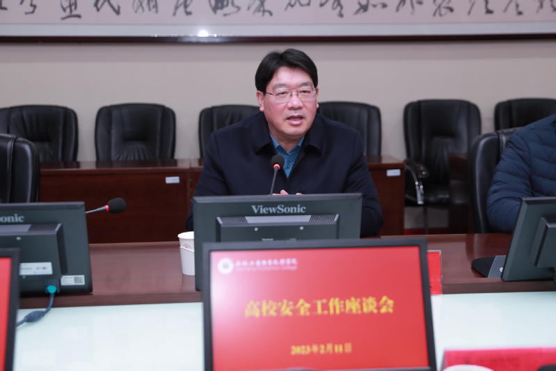 会上,蔺俊首先对市公安局盐南高新区分局领导来校指导工作表示热烈的欢迎。他指出,近年来,学校与市公安局盐南高新区分局、科城派出所不断加强警校共建,密切联动协作,有力维护了校园的安全稳定。他从“思想认识到位”“组织领导到位”“宣传教育到位”“排查整治到位”等四个方面,简要介绍了学校维护安全稳定工作的主要做法。