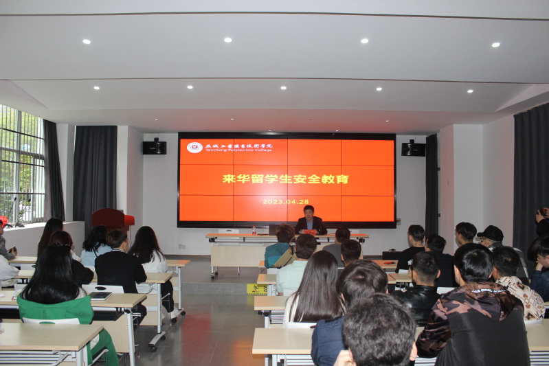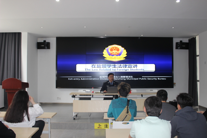 会上,盐城市公安局出入境管理支队警官汪会亮作了题为《在盐留学生法律宣讲》的专题讲座,对《中华人民共和国出境入境管理法》《中华人民共和国外国人入境出境管理条例》等法律法规进行了解读,从住宿登记、签证办理、停留居留、日常规范、学校管理等方面介绍了我国相关出入境管理规定,并对护照遗失、签证过期、非法就业、紧急求助等具体问题进行了详细解答。