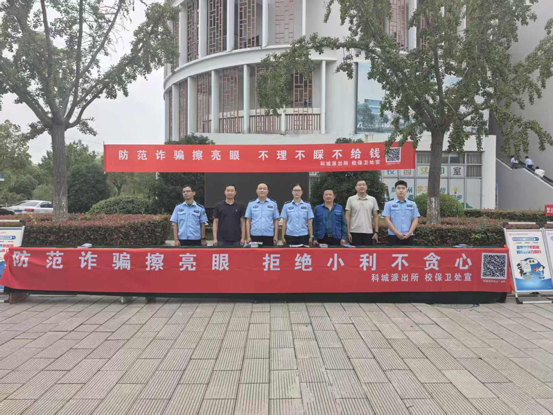 为进一步增强全校师生的反诈防骗意识,切实保障师生财产安全,9月28日,我校保卫处联合科城派出所、科城街道和驻校民警在学生服务中心前广场开展“提高警惕,谨防诈骗”为主题的反诈宣传活动。