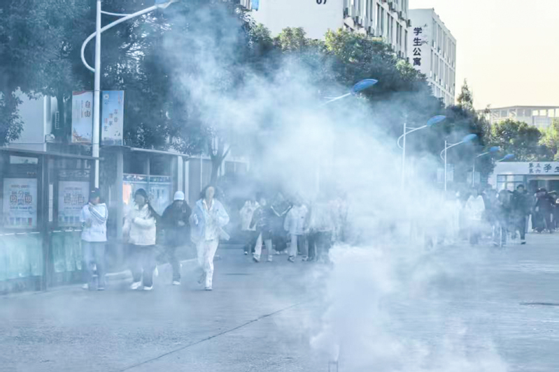14时30分,杨彦宣布2025年度消防应急疏散演练正式开始。随着火灾警报响起,消防总控室立即启动消防应急程序,后勤人员迅速切断宿舍电源,打开宿舍消防通道,校广播室广播逃生演练注意事项,疏散工作组、抢险救护组、后勤保障组等应急小组立即到位并组织人员疏散,同学们在紧急疏散组人员的引导下迅速撤离到学校运动场安全位置。